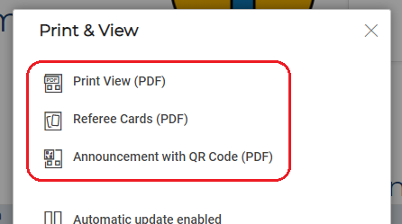 - Creating a PDF for printingWays to create printed overviews and notices for your tournament.