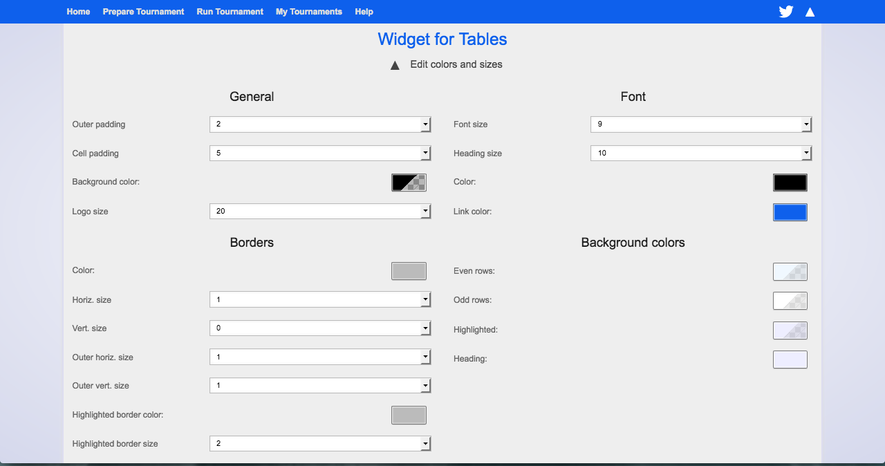 If you want to display your tournament on your website or blog, widgets are perfect to do so.